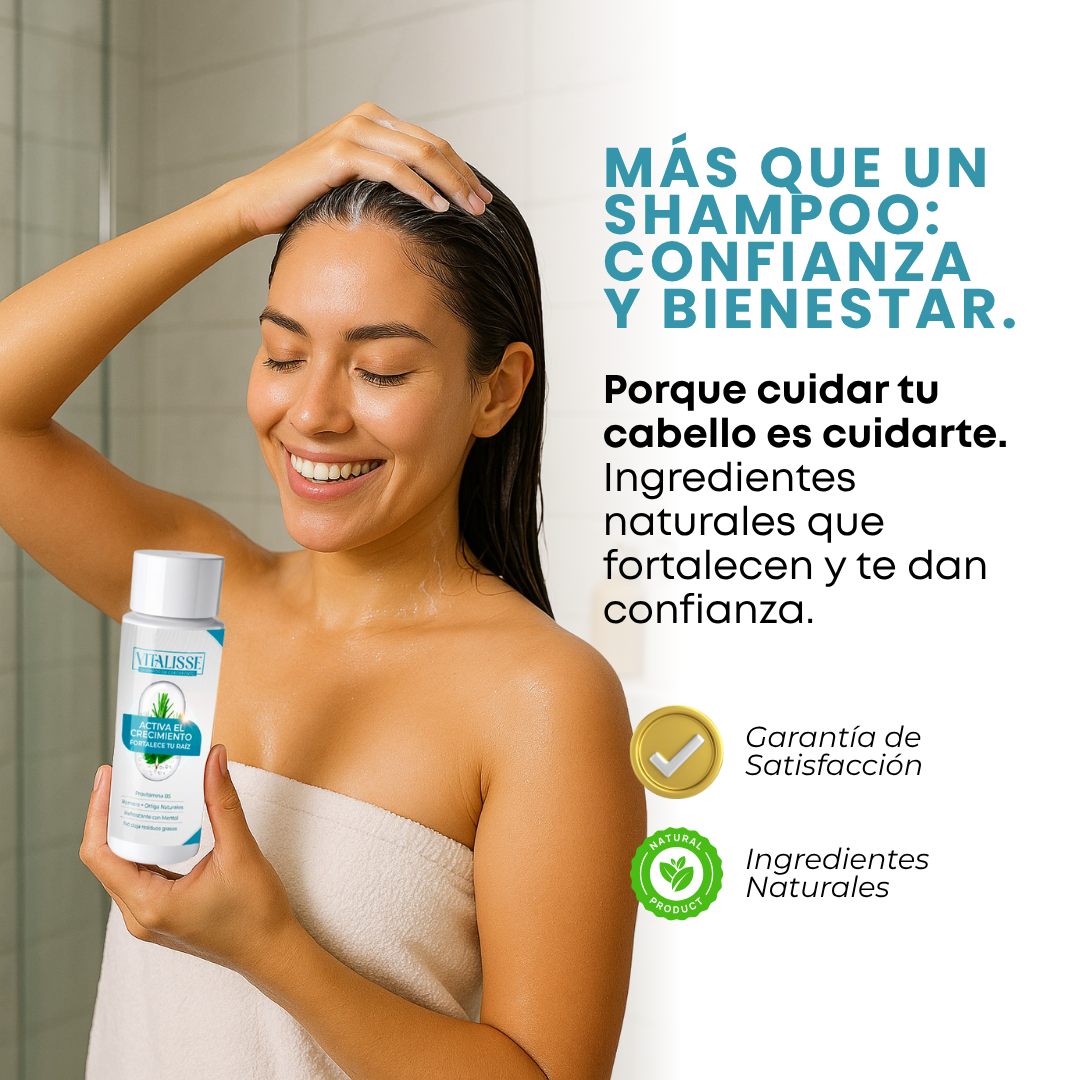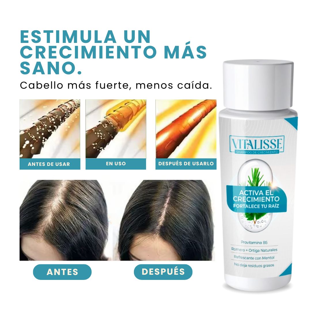 Descubre cómo el SHAMPOO CRECIMIENTO transforma tu cabello, fortaleciéndolo desde la raíz y ayudándolo a crecer más largo, sano y fuerte.